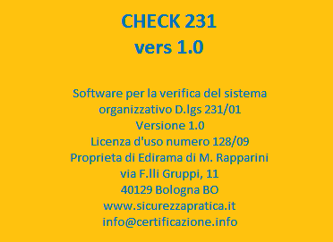 non conformità dell'azienda ai requisiti del D.lgs 231/01. Il software