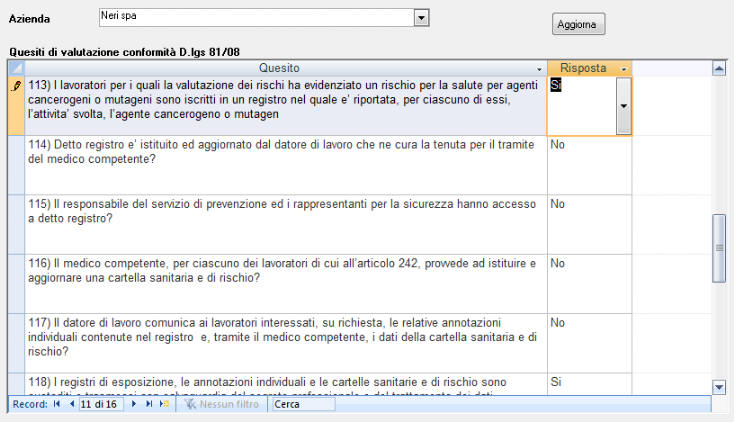 della conformità al D.lgs 81/2008 (alta, media, bassa) e ai consigli